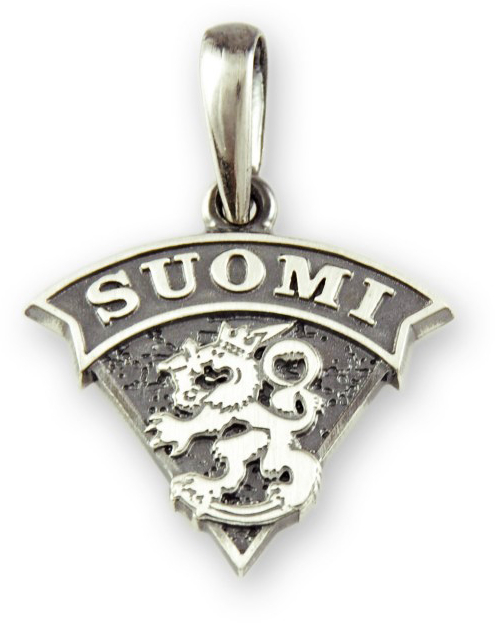 Leijonat -korumalliston pieni hopeariipus. Riipus on valmistettu Suomessa 925-Sterling hopeasta. Koru on patinoitu. Tuote toimitetaan valmistajan alkuperäisessä rasiassa.