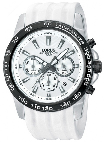 Lorus RT319BX-9 on 100m vesitiivis huippuedullinen chronograph kello, jossa on tyylikäs valkoinen ranneke. Kellon rungon leveys on 44mm ja rannekkeen leveys 22mm. Kellossa ajanotto, 24h näyttö sekä päivyri. Laadukkaille Lorus -kelloilla myönnetään 2 vuoden takuu. Tuote toimitetaan valmistajan alkuperäisessä rasiassa postikuluitta.