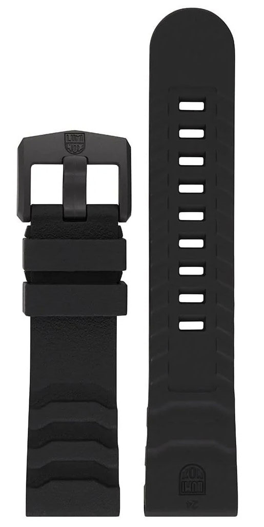 Nitrilikumista valmistettu musta ranneke kestää erinomaisesti vettä, UV-säteilyä, kemikaaleja sekä äärimmäisiä lämpötiloja, mikä tekee siitä luotettavan valinnan niin sukellukseen kuin aktiiviseen arkeen. Materiaali on samalla joustava ja miellyttävä ranteessa, joten se soveltuu pitkäaikaiseen käyttöön ilman kompromisseja mukavuudessa. Ranneke on leveydeltään 24 mm ja se on yhteensopiva Luminox Navy SEAL 3600-sarjan kellojen kanssa.
