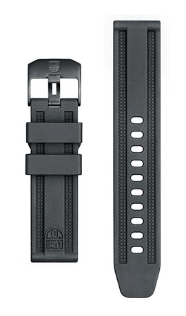 Luminox FP8800.20B Navy Seal -ranneke on leveydeltään 23 mm. Yhteensopiva Luminox 8800- ja ANU4200-malliston kanssa. Se sopii kuitenkin loistavasti kaikkiin rannekelloihin, joiden rannekkeen kiinnityskohdan leveys on 23 mm. Rannekkeen solki on tummanharmaa. Pakkauksen mukana ei tule jousinastoja rannekkeen kiinnittämistä varten