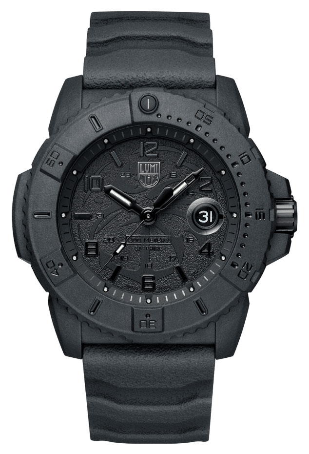 Luminox Navy SEAL Foundation 3601.BO.NSF rannekellossa on silmiinpistävä, täysin musta värimaailma kellon rungosta kellotauluun ja rannekkeeseen asti. Tässä näyttävässä designissa on Navy SEAL Foundation -logo kellotaulun ja rungon takaosassa. Kello on varustettu kestävällä CARBONOX-rungolla, joka on 45 mm leveä ja 13 mm paksu. Naarmuuntumaton ja heijastamaton safiirilasi suojaa kellotaulua, jossa on suurennuslasilla korostettu päivyri klo 3 kohdalla ja joka hyödyntää Luminox Light Technologya, taaten erinomaisen luettavuuden kaikissa valaistusolosuhteissa ja sääolosuhteista riippumatta jopa 25 vuoden ajan. Kelloon kiinnittyy taipuisa kumiranneke, jonka leveys kiinnityskohdasta on 24 mm. Sveitsiläisen RONDA 515 kvartsiliikkeen ansiosta tämä kello on paitsi toimiva jokapäiväiseen käyttöön, mutta myös luotettava kumppani missä tahansa ympäristössä veden päällä tai alla. Kellon kokonaispaino on 90 grammaa ja se kuuluu vesitiiviysluokkaan 200m / 20atm, joten se on erikoisvesitiivis ja soveltuu laitesukellukseen.