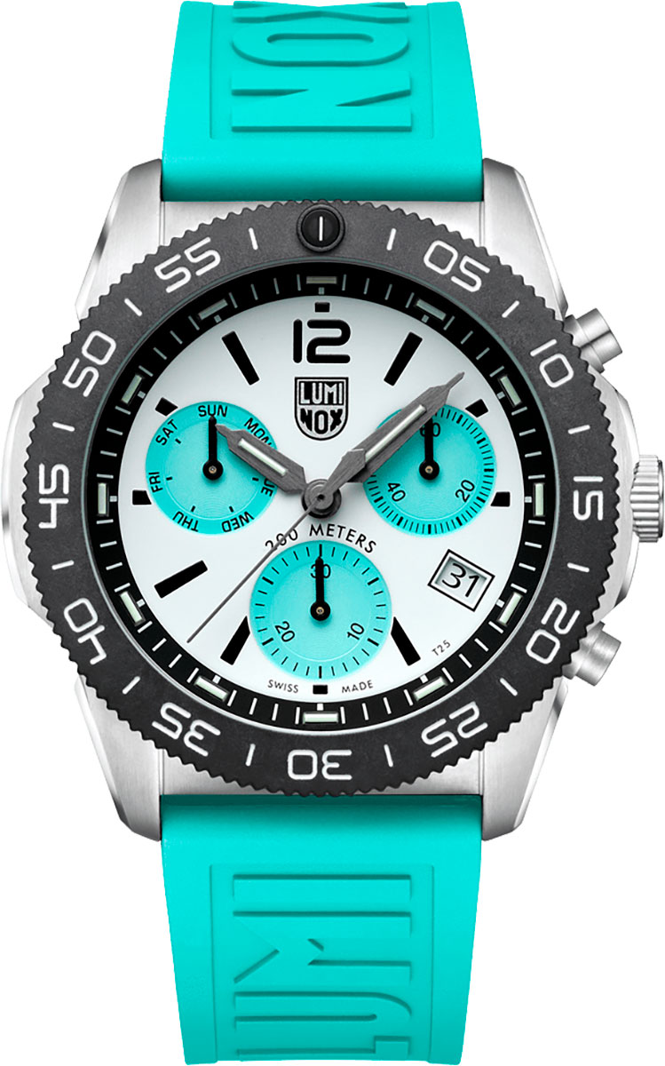 Luminox Pacific Driver Chronograph 3143.1 Limited Edition -kronografikellossa on kestävä CARBONOX™-kehys ja 316L ruostumattomasta kirurginteräksestä valmistettu runko yhdistettynä vaaleansiniseen kumirannekkeeseen. Heijastamattomassa kellotaulussa safiirilasin alla on päivyri sekä kolme alataulua päivämäärän ja ajanoton seuraamista varten. Rungon kääntöpuolella on kaiverrettu Bear Gryllsin sanonta "Every Second Counts". Kumiranneke on vaihdettavissa minkä tahansa Luminox-kokoelman 24 mm:n rannekkeen kanssa.