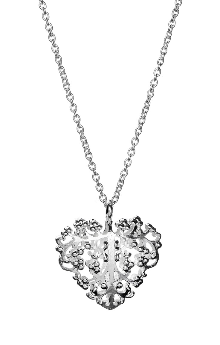 Riipuksen koko 35 x 36 mm Ketjun pituus 50 cm. Materiaali: 925 Sterling-hopea Suunnittelija: Carina Blomqvist