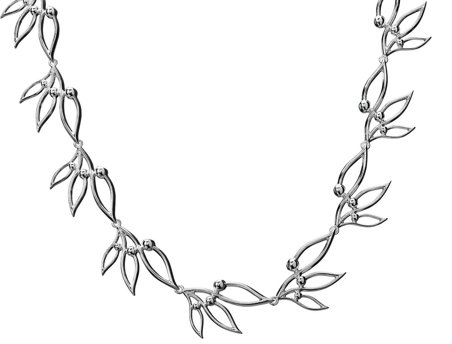 Hopeaketjun pituus 45cm ja kaulakäädyn leveys 24mm. Materiaali: 925 Sterling-hopea Suunnittelija: Eelis Aleksi