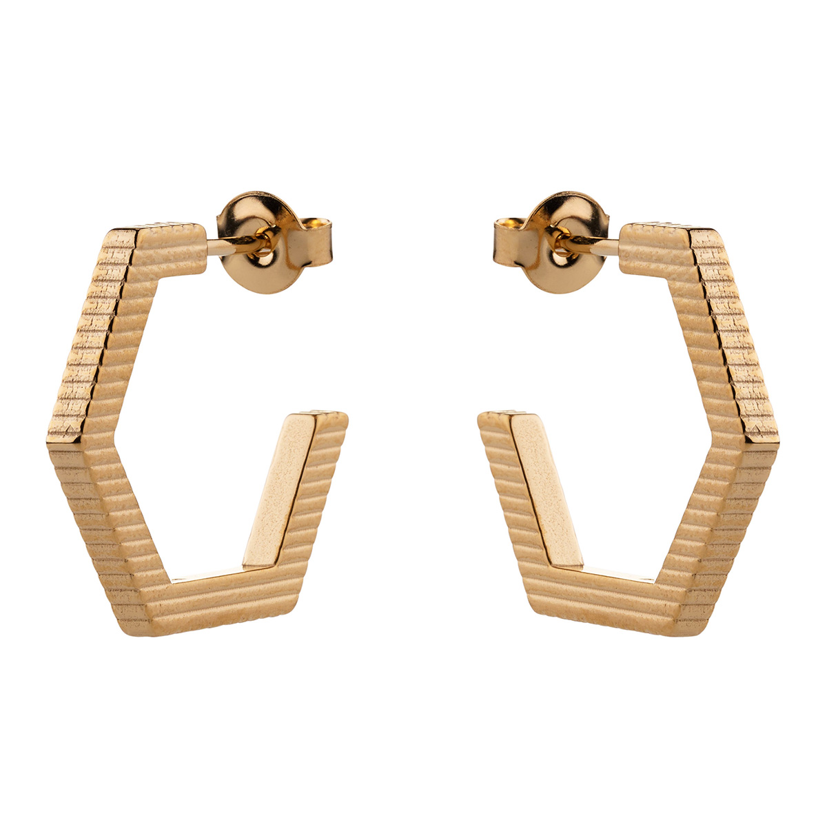 Lumoava Studio Drop Honey Trap LS64260400000 -korvarenkaat yhdistävät modernin muotoilun ja mehiläispesästä inspiroituneen hunajakennokuvioinnin. Hunajakennokuvio tuo ilmeeseen rytmiä ja syvyyttä, samalla viitaten mehiläisten maailmaan – harmoniaan, ahkeruuteen ja vetovoimaan. Keltakullatusta pronssista valmistetut Honey Trap -korvakorut ovat kevyet ja miellyttävät käyttää, mutta silti tarpeeksi näyttävät herättääkseen huomion. Koko: 2 x 19 mm.