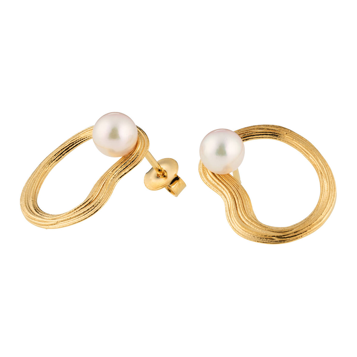 Keltakullatun hopean lämmin sävy korostaa korun elävää pintaa, tuoden siihen hienostunutta hehkua sekä laadukas, vaalea akoya-helmi viimeistelee ulkonäön. Kevyet ja miellyttävät käyttää, Uoma-korvakorut sopivat niin arjen viimeistelyyn kuin juhlavampiin hetkiin. Ne toimivat myös merkityksellisenä lahjana toiselle. Koko 15 x 18 mm ja akoya-helmi 5,5 mm. Suunnittelu: Inni Pärnänen.
