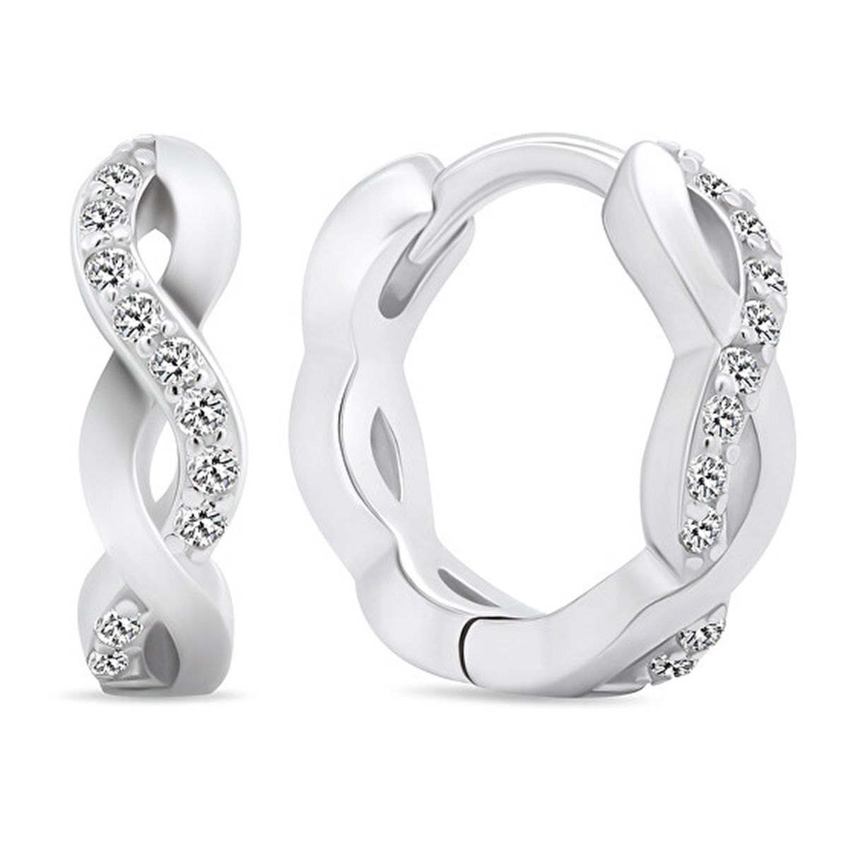 Korvakorut on valmistettu hopeasta ja viimeistelty säihkyvillä zirkonioilla. Ajaton hopean sävy ja punosmuotoilu tekevät koruista helposti yhdisteltävät erilaisiin tyyleihin.