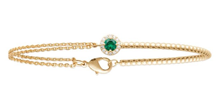 Lykka Casuals kullattu halo vihreä zirkonia hopearannekorua koristaa kruunuistutettu smaragdinvihreä zirkonia, jota reunustaa briljanttihiotut, kirkkaat zirkoniat. Ylellinen naisten rannekoru on hopeaa, ja pinta on viimeistelty keltakullalla. Ketjun pituus on 18 cm. Lykka-korut toimitetaan kauniissa rasiassa.
