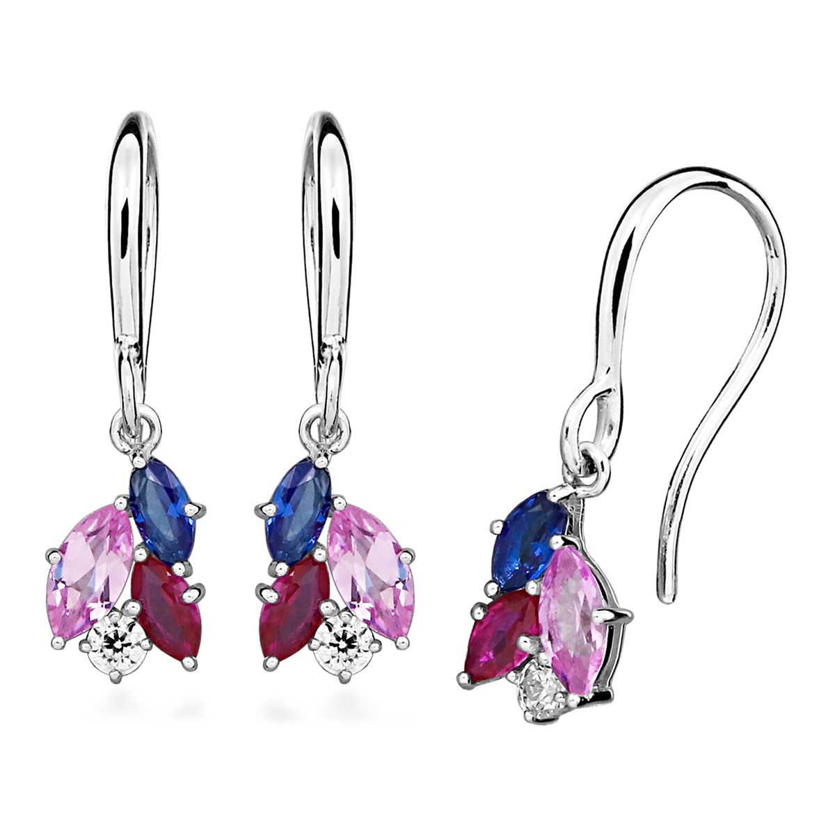Näyttävät Lykka Casuals -hopeakorvakorut hurmaavat raikkaalla ja värikkäällä kiviyhdistelmällään. Korvakoruissa säihkyvät valkoinen zirkonia, synteettinen sininen safiiri, synteettinen pinkki safiiri sekä synteettinen rubiini, jotka muodostavat kauniin ja eläväisen kokonaisuuden. Moniväriset kivet tuovat koruihin modernia ilmettä ja tekevät niistä katseenvangitsijan niin arkeen kuin juhlaan.