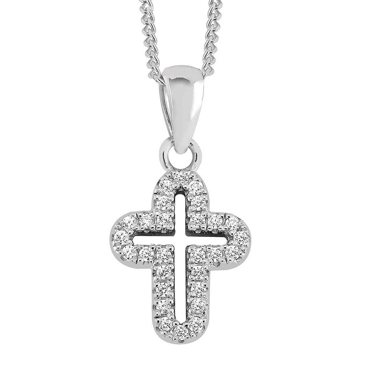 Riipuksen koko on 12 x 9,50 mm, mikä tekee korusta hienostuneen ja kevyen käyttää niin arjessa kuin juhlassakin. Materiaalina on rodinoitu hopea, joka antaa korulle kirkkaan kiillon ja auttaa suojaamaan pintaa tummumiselta. Zirkoniat korostavat ristin muotoa ja luovat näyttävän, mutta silti tyylikkään kokonaisuuden.