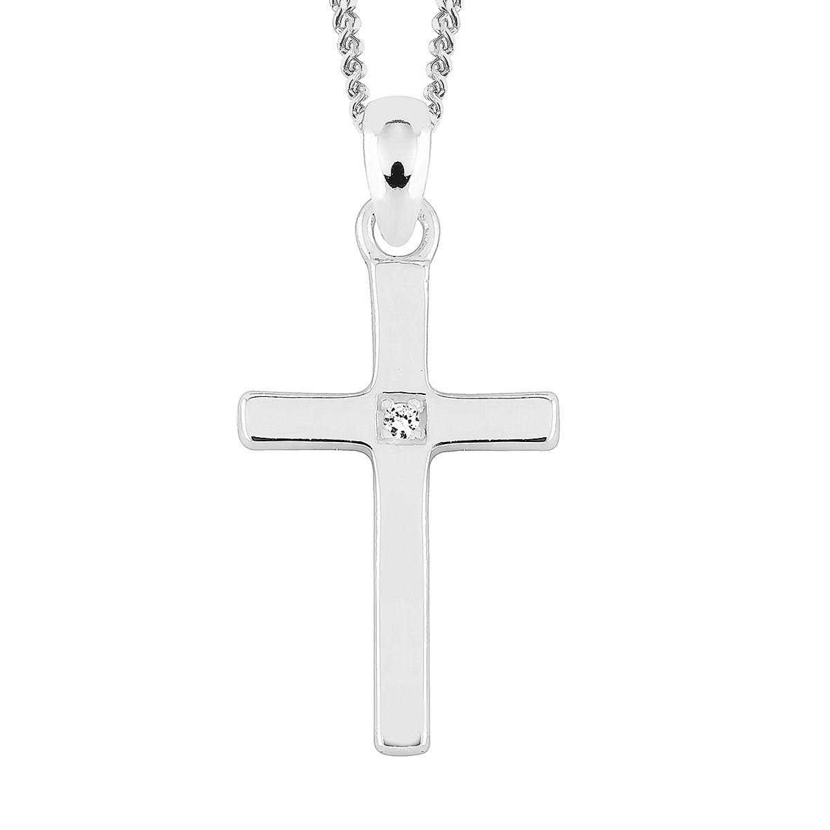 Lykka Crosses hopeinen ristikaulakoru zirkonia 45 cm