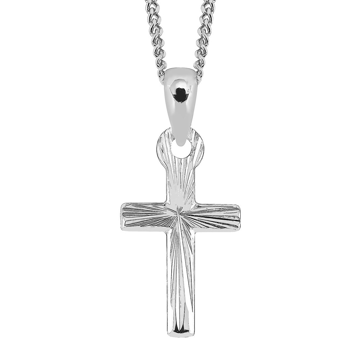Lykka Crosses hopeinen säteilevä ristikaulakoru 45 cm