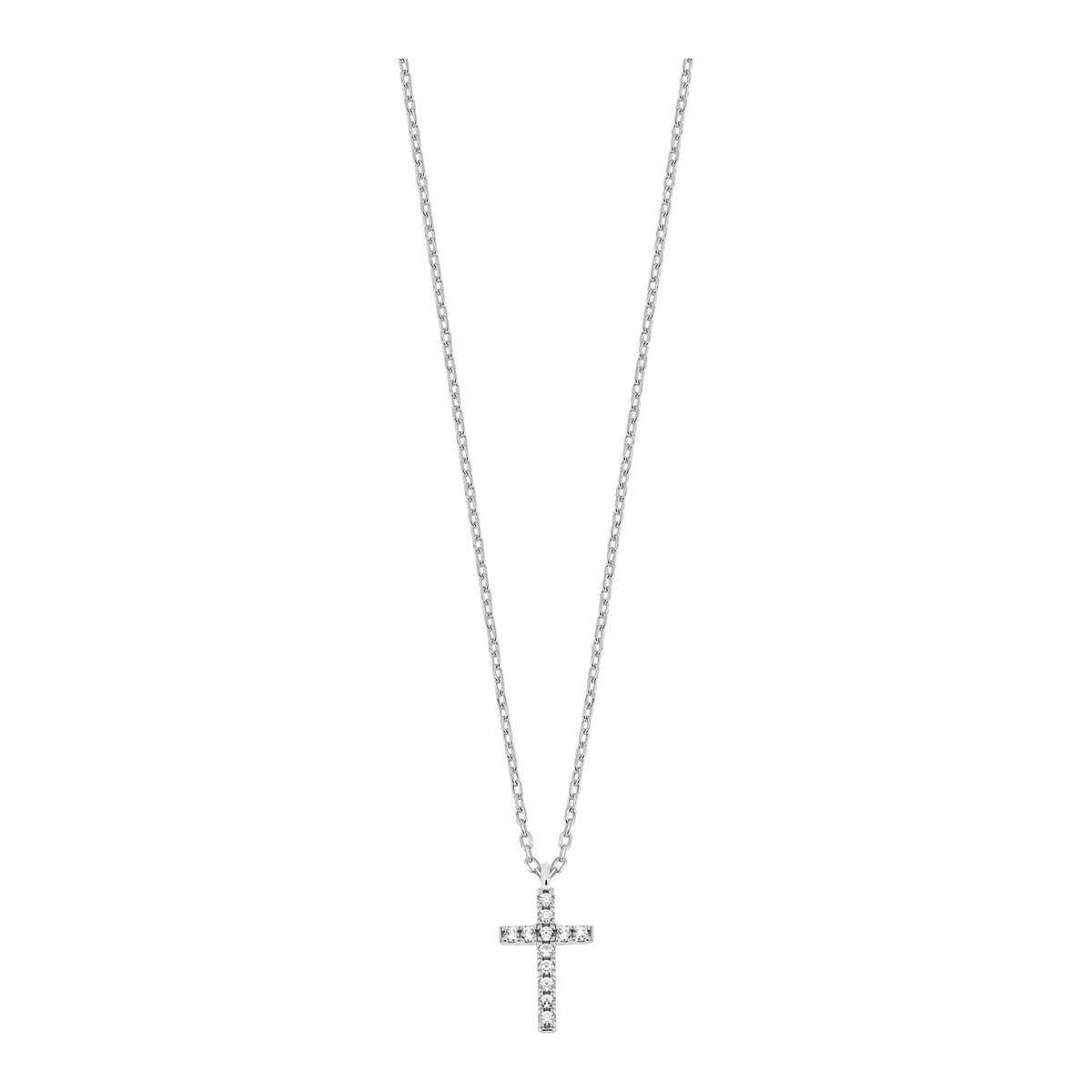 Lykka Crosses hopeinen zirkonia risti kaulakoru 15.5 mm