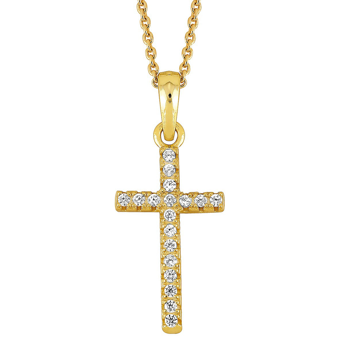 Lykka Crosses kullattu hopeinen keskikokoinen ristikaulakoru zirkonioilla 45 cm
