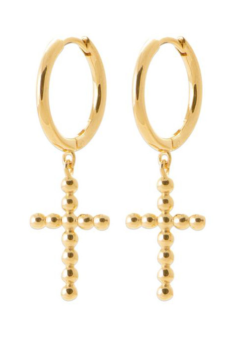 Kullatuissa Lykka Crosses risti hopeakorvakoruissa on ristiriipus. Ristikorvakorut ovat keltakullattua hopeaa, ja pukemista helpottaa ohut rengas. Lykka-korut toimitetaan kauniissa rasiassa.