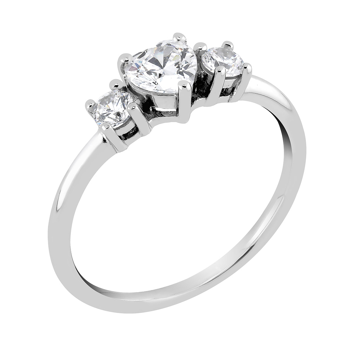 Lykka Hearts hopeinen sydänsormus kolmikivinen zirkonia