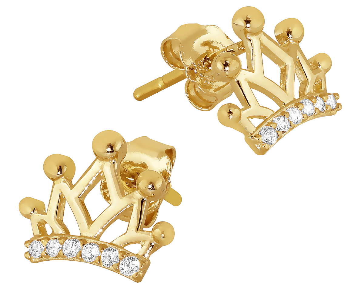 Lykken Symbols kultakorvakoruissa on kruunumuoto ja usean synteettisen zirkonian istutus. Koko: 6.50mm x 8.15mm. Materiaali: 9 karaatin kulta. Korut toimitetaan kauniissa Lykken rasiassa.