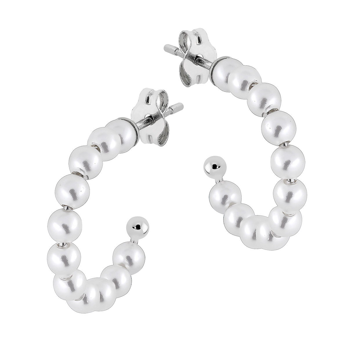 Ihanat ja raikkaat Lykka Pearls rengaskorvakorut helmillä antavat kaunista hohtoa tyyliisi. Kaareva rivi valkoisena hohtavia lasihelmiä anta a modernin ilmeen tälle helmikorulle. Korvakorun halkaisija on 18mm ja helmen koko 3mm. Korvakorun materiaali on hopeaa ja niissä on tappikiinnitys. Toimitetaan Lykka rasiassa.