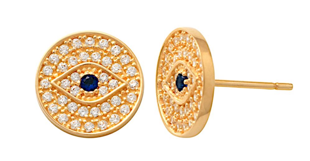 Lykka Evil Eye korvakorut tukevalla tappikiinnityksellä. Pyöreissä kultaisissa Evil Eye pavé korvakoruissa on kirkkaat zirkoniat sekä keskellä paha silmä, jossa sininen zirkonia. Sanotaan, että Evil Eye symbolin käyttäminen suojaa käyttäjäänsä pahalta ja huonolta onnelta. Korvakorut on valmistettu 9 karaatin kullasta ja niiden halkaisija on 9,15 mm. Lykka korut toimitetaan kauniissa korurasiassa.
