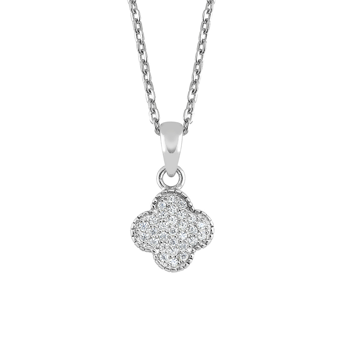 Lykka Symbols hopeakaulakoru apilariipuksella ja zirkoniakoristeilla 45 cm