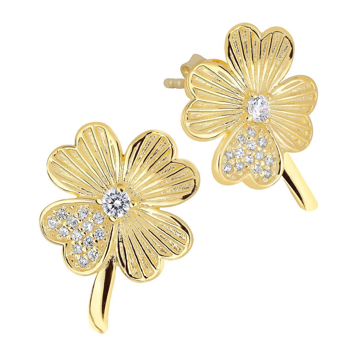 Lykka Symbols apilakorvakoruilla tuot ripauksen eleganttia onnea tyyliisi. Korvakorut on valmistettu kullatusta hopeasta ja nelilehtinen apila on viimeistelty säihkyvin zirkoniakivin, jotka koristavat yhtä lehteä ja korun keskustaa.