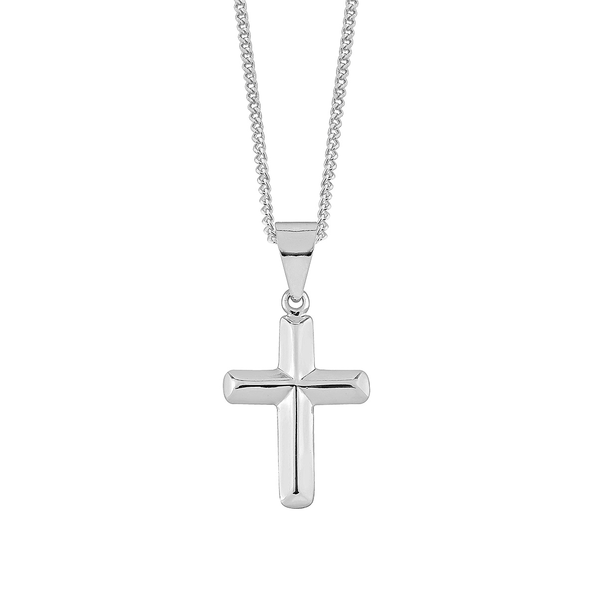 Lykken Crosses hopeinen pyöristetty ristikaulakoru 45 cm