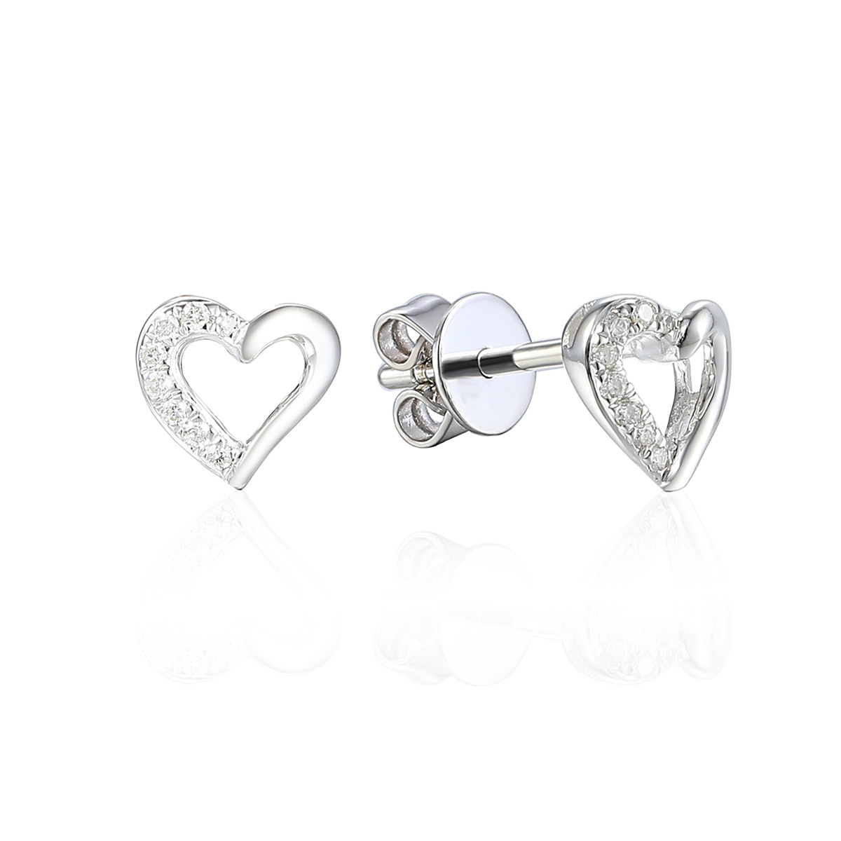Korvakorut on valmistettu kauniisti kiiltävästä valkokullasta, ja niiden sydänmuotoa korostaa yhteensä 16 säihkyvää timanttia, joiden yhteispaino on 0,040 karaattia. Timantit tuovat koruihin hienovaraista kimmellystä ja viimeistelevät elegantin ilmeen.