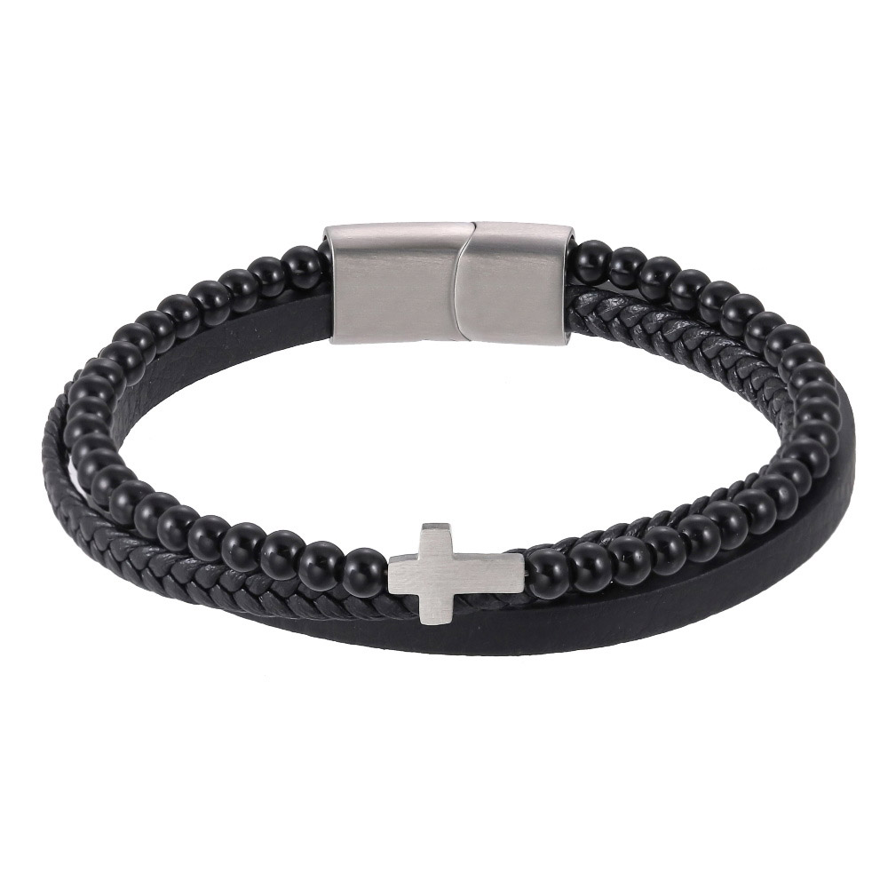 Lykken Strong -rannekoru yhdistää tyylikkäästi useita materiaaleja luoden modernin ja maskuliinisen kokonaisuuden. Rannekorussa on musta helmimäinen nauha, punottu nauha sekä sileä rannekenauha, joita täydentää hillitty teräksinen ristikoriste. Yhdistelmä luo näyttävän ja ajattoman ilmeen.
