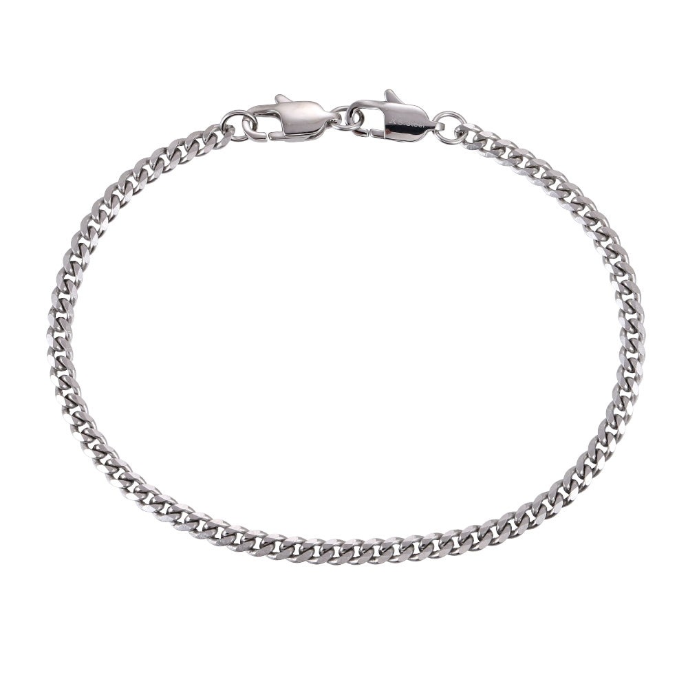 Rannekoru on valmistettu ruostumattomasta teräksestä, joka tunnetaan kestävyydestään ja miellyttävästä käyttötuntumastaan. Hopeanvärinen teräspinta antaa korulle modernin ilmeen ja tukeva papukaijalukko pitää korun turvallisesti paikoillaan. Koko: 21 x 0,35 cm.
