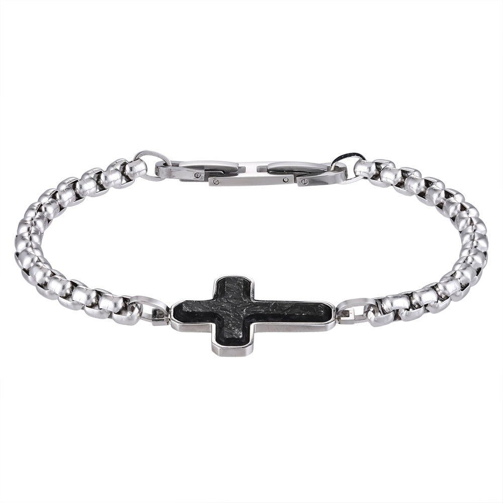 Näyttävä ja tyylikäs Lykken Strong -rannekoru yhdistää modernin muotoilun ja ajattoman symboliikan. Rannekorun keskipisteenä toimii teräksinen, musta ristikoriste, joka luo koruun voimakkaan ja persoonallisen ilmeen.