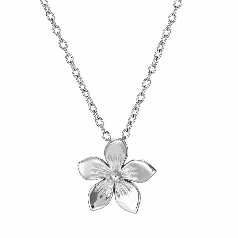 Lykken Trend -kaulakoru hurmaa näyttävällä ja elegantilla kukkamuotoilullaan. Hopeanvärinen riipus on muotoiltu kauniiksi kukaksi, jonka kevyesti teksturoitu keskiosa ja sileät terälehdet luovat koruun elävyyttä ja hienostunutta kiiltoa.