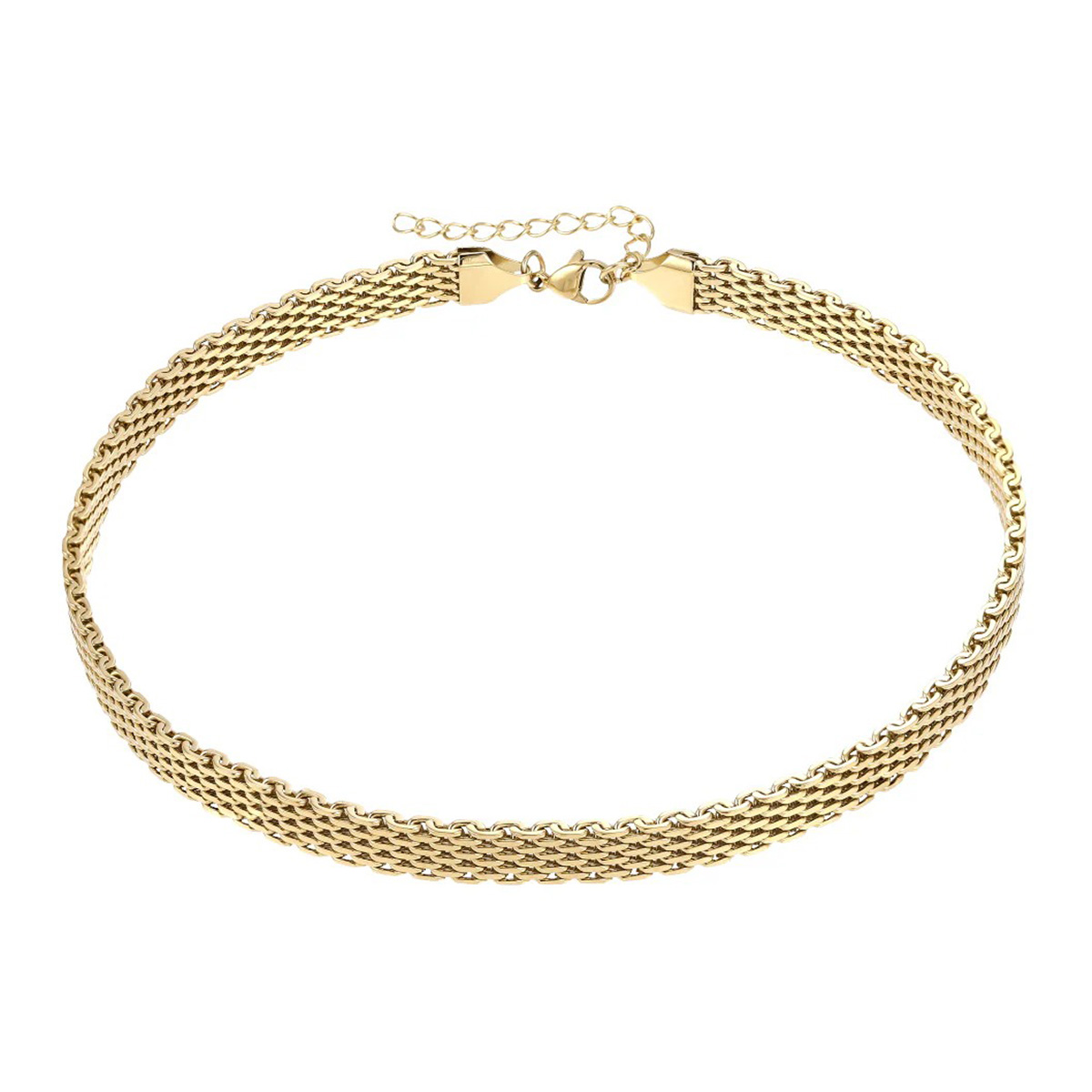 Korkealaatuinen ruostumaton teräs on päällystetty kestävävällä 14k kultapinnoitteella, joka säilyttää loistonsa vuodesta toiseen. Se on minimalistinen, hienostunut ja helppo yhdistää muiden kultaisten asusteiden rinnalla. Ketjun säädettävä pituus 35 + 5 cm, leveys 8 mm ja paksuus 2,5 mm.