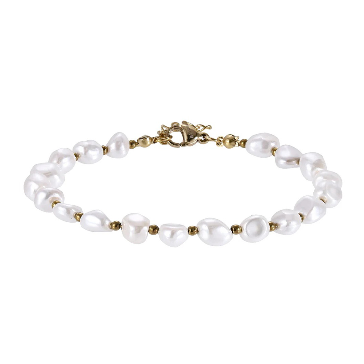 Rannekoru koostuu aidoista makeanvedenhelmistä, joiden hurmaava, hieman epätasainen muoto korostaa jokaisen helmen ainutlaatuisuutta. Helmien välissä välkehtivät pienet, kullatut teräspallot tuovat koruun hienoa kontrastia. Teräsosat on viimeistelty laadukkaalla 14k keltakultauksella, joka säilyttää loistonsa ja on ihoystävällinen. Jatkoketjun avulla voit säätää korun pituuden juuri itsellesi sopivaksi; ketjun säädettävä pituus on 18 + 2 cm ja leveys 6 mm.