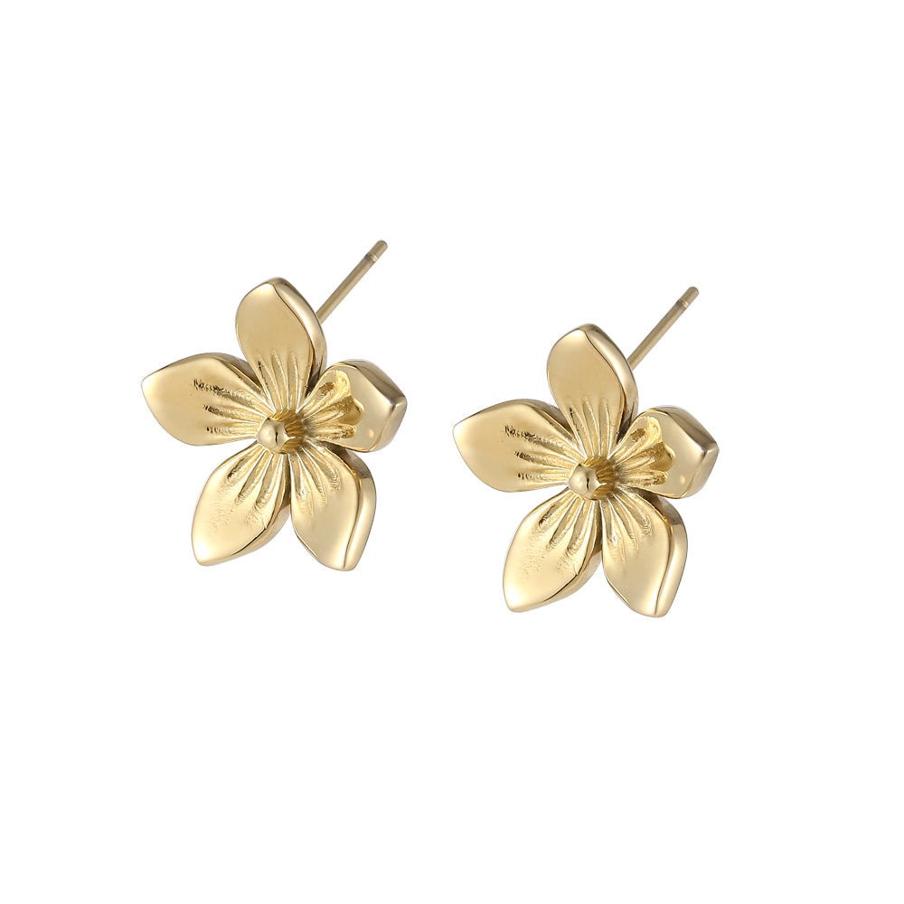 Korvakorut on valmistettu 14 karaatin kultapinnoitetusta ruostumattomasta teräksestä, joka säilyttää kiiltonsa ja kestää hyvin päivittäistä käyttöä. Ajaton kukkadesign sopii täydellisesti sekä arkeen että juhlaan. Tappikiinnitteiset korvakorut tuovat asuun pehmeää naisellisuutta ja raikasta ilmettä, ja ne on helppo yhdistää muihin koruihin. Koko: 18.8 x 18 x 5 x 0.8 mm.