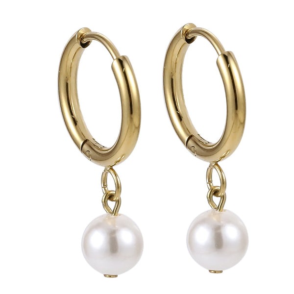 Lykken Trend valkoinen helmi kullatut korvarenkaat 10 mm