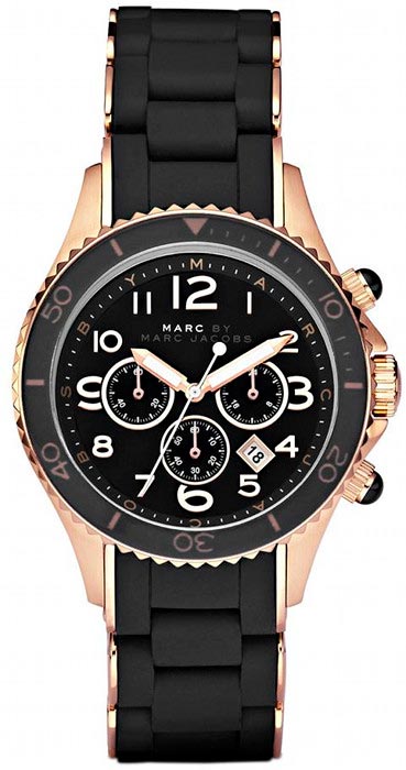 Naisten Marc by Marc Jacobs MBM2553 rannekello. Kellon runko on leveydeltään 40mm ja paksuudeltaan 13mm. Sen rannekkeen leveys on 20mm. Rannekeen metalliset palat on päällystetty kumilla. Kellossa ajanotto sekä päivyri. Laadukkaille Marc by Marc Jacobs kelloille myönnetään kahden vuoden takuu ja ne toimitetaan valmistajan alkuperäisessä rasiassa.