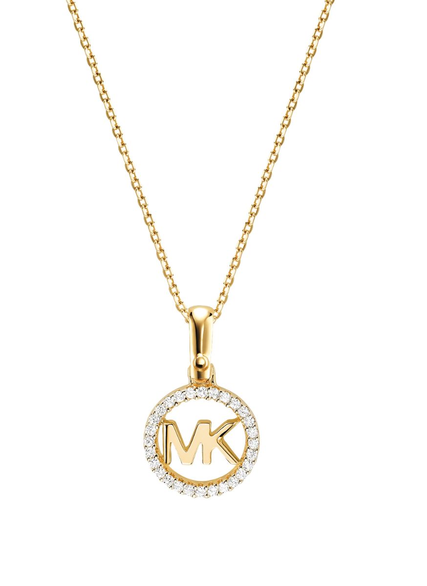 Michael Kors kullanvärinen logo hopeakaulakoru MKC1108AN710 on sterling-hopeaa, ja sitä koristaa briljantit zirkoniat ja Michael Kors-logo. Ketjun pituus on 40-45 cm, ja riipuksen koko on 13 mm. Sarjasta on saatavana myös yhteensopivat korvakorut. Michael Kors-korut toimitetaan valmistajan alkuperäisessä pakkauksessa.