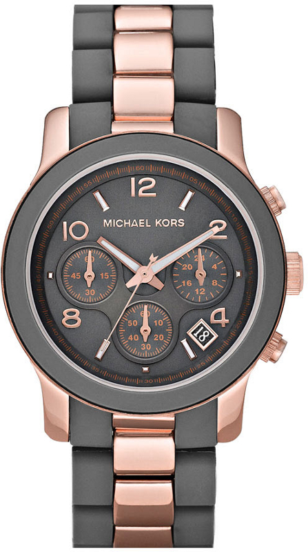 Muodikas ja persoonallisen värinen naisten Michael Kors MK5465 rannekello. Kellon runko on leveydeltään 40mm ja paksuudeltaan 14mm. Sen ruostumattomasta teräksestä valmistettu ranneke on pinnotettu harmaalla mukavan pehmeällä polyuretaanilla. Rannekkeen leveys on 18mm. Laadukkaille Michael Kors kelloille myönnetään kahden vuoden takuu ja ne toimitetaan valmistajan alkuperäisessä rasiassa.