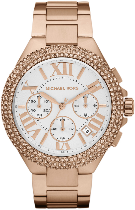 Rannekellon malli: Michael Kors Mid-Size Rose Golden Stainless Steel Camille Chronograph Glitz Watch