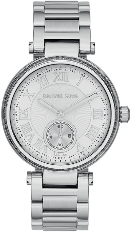 Huippuhieno naisten Michael Kors MK5866 rannekello. Kellon runko on leveydeltään 41mm ja paksuudeltaan 12mm. Sen rannekkeen leveys on 20mm. Tuotteen nimi on kokonaisuudessaan Michael Kors MK5866 Skylar Pavé-Embellished Silver-Tone Stainless Steel. Laadukkaille Michael Kors kelloille myönnetään kahden vuoden takuu ja ne toimitetaan valmistajan alkuperäisessä rasiassa.