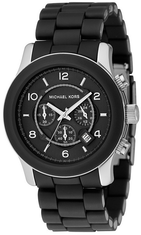 Tyylikäs Michael Kors MK8107 rannekello. Kellon runko on leveydeltään 44mm ja paksuudeltaan 15mm. Sen ruostumattomasta teräksestä valmistettu ranneke on pinnotettu mukavan pehmeällä polyuretaanilla. Rannekkeen leveys on 24mm. Laadukkaille Michael Kors kelloille myönnetään kahden vuoden takuu ja ne toimitetaan valmistajan alkuperäisessä rasiassa postikuluitta.