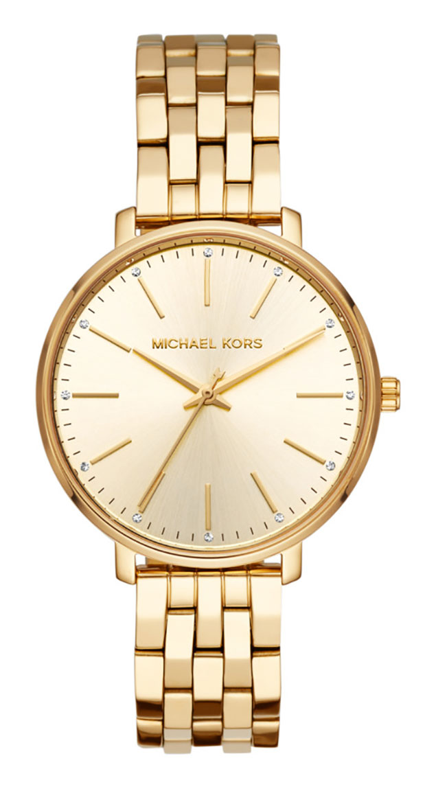 Kullanvärinen Michael Kors Pyper MK3898 -rannekello on muotoilultaan hyvin perinteinen ja ennen kaikkea selkeälukuinen. Yksinkertaisin indeksein koristeltua kellotaulua kiertävät kirkkaat kristallit. Kellon runko (38 mm) ja ranneke (18 mm) on valmistettu ruostumattomasta teräksestä. Katso myös malliston muut upeat värivaihtoehdot!