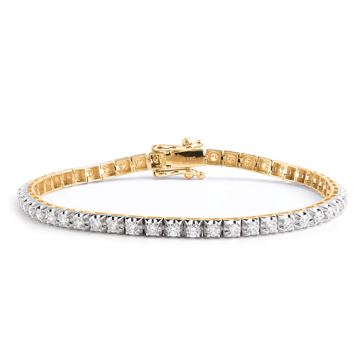 Klassinen Midem Helsinki -tennisrannekoru yhdistää ajattoman tyylin ja eettisen ylellisyyden todella näyttävässä koossa. Tämä 18 cm pitkä rannekoru on valmistettu korkealaatuisesta 14 karaatin keltakullasta (585) ja viimeistelty turvallisella lukitusmekanismilla.
