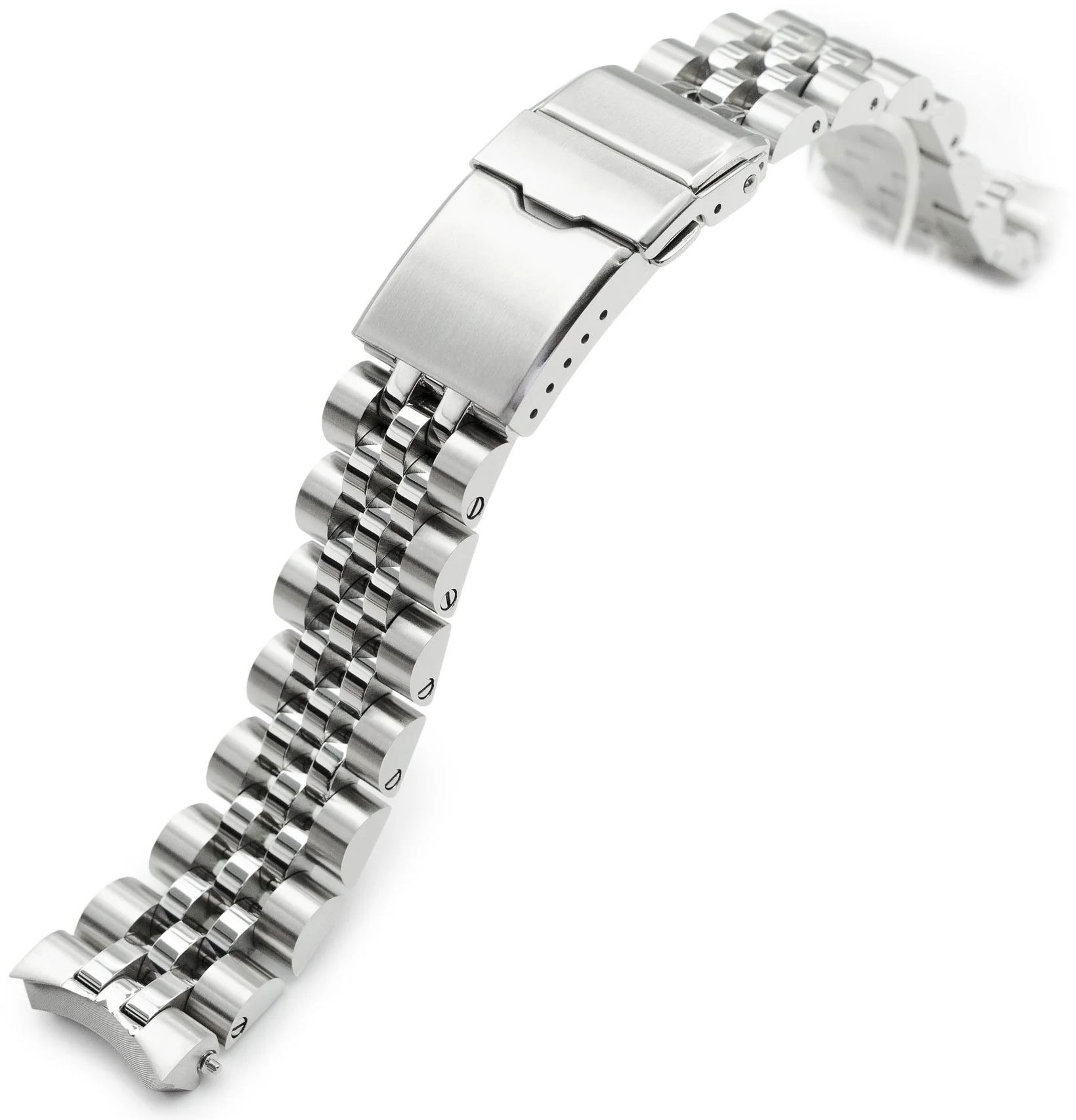 MiLTAT Angus-J Louis teräsranneke Seiko Prospex -sarjaan SS201823B173 sopii täydellisesti Seiko Prospex SPB185:een ja SPB187:ään. Angus-J Louis ranneke on pyöreämpi ja tukevampi versio Super-J Louis -rannekkeesta ja se on valmistettu 316L-kirurginteräksestä. Rannekkeen mukana toimitetaan 2 kpl 2,5 mm jousinastoja, jotka takaavat turvallisen kiinnityksen kellon runkoon, ja pituutta on helppo säätää lukon säätöreikien ansiosta.