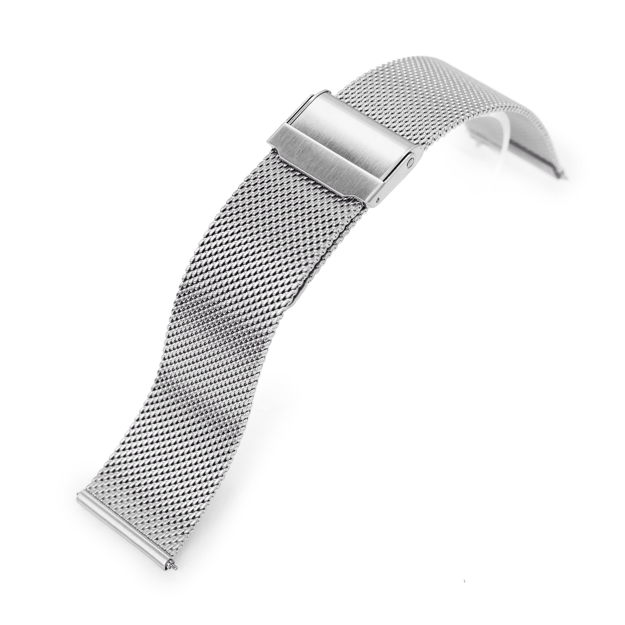 MiLTAT Classic Superfine Mesh ranneke 20 mm MB2018FYB045 on valmistettu todella hienosta Mesh-punoksesta. Materiaalina 316L ruostumaton teräs.Rannekeen pituutta on helppo säätää kotikonstein lukkoa siirtämällä. Mukana toimitetaan 2 kpl 1,78 mm pikajousinastoja, jotka takaavat turvallisen kiinnityksen kellon runkoon. Rannekkeen leveys päädyistä on 20 mm ja lukon kohdasta 18 mm. MiLTAT-rannekkeille myönnetään vuoden takuu.