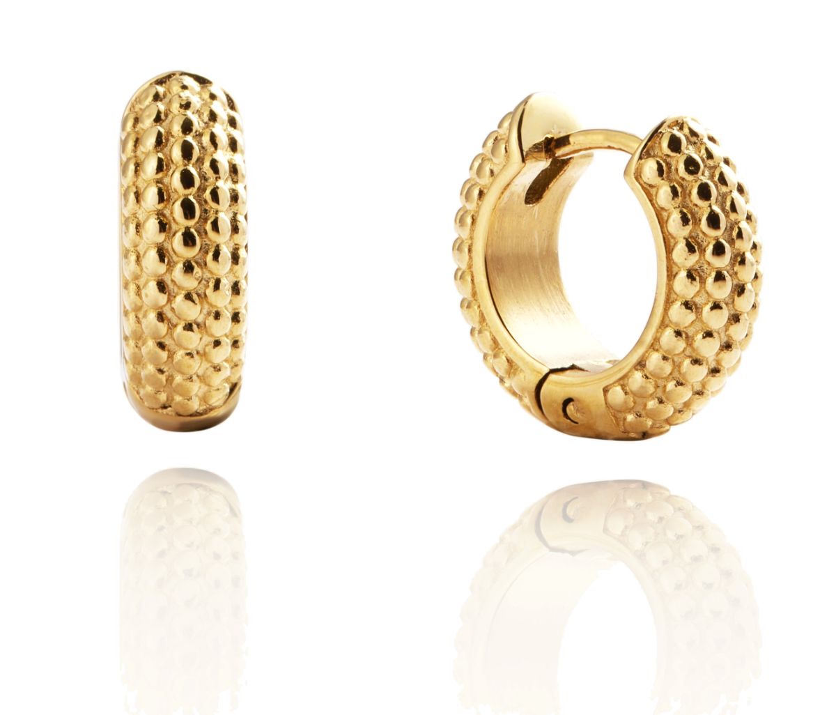 Kullanväriset Mockberg Beaded korvarenkaat Small MO229 ihastuttavat kuvioidulla pinnallaan. Ylelliset kullanväriset korvarenkaat sopivat useisiin eri tyyleihin, ja kokonaisuuden viimeistelee 18-karaatin PVD-pinnoite, joka pitää korvakorut kiiltävänä pitkään. Mockberg Beaded-korvarenkaat on valmistettu ruostumattomasta teräksestä, ja niiden koko on 14 mm. Kaikilla Mockberg-koruilla on 1 vuoden vuoden takuu, ja ne toimitetaan FSC- sertifioidussa rasiassa. Mockberg korut ovat täysin vedenkestäviä. Voit siis käydä huoletta suihkussa, kylpeä ja urheilla riisumatta koruja.