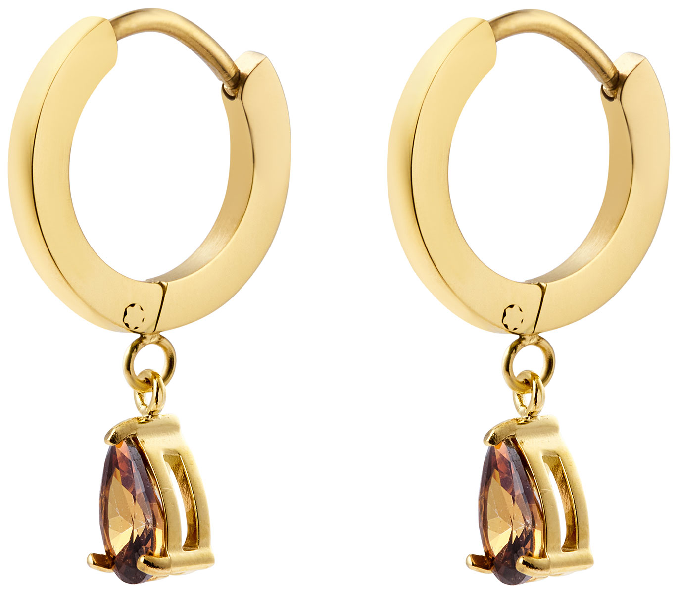 Mockberg Belle Gold Hoops Coffee MB0837 ovat klassiset 18K kullatut korvarenkaat PVD-pinnoitteella, jotka on valmistettu ruostumattomasta teräksestä. Korvakoruissa on näyttävät ruskeat, pisaran muotoiset zirkoniat sekä ajattomat renkaat, jotka tekevät niistä täydellisen asusteen kaikkiin tilaisuuksiin. Koko: 13 mm.