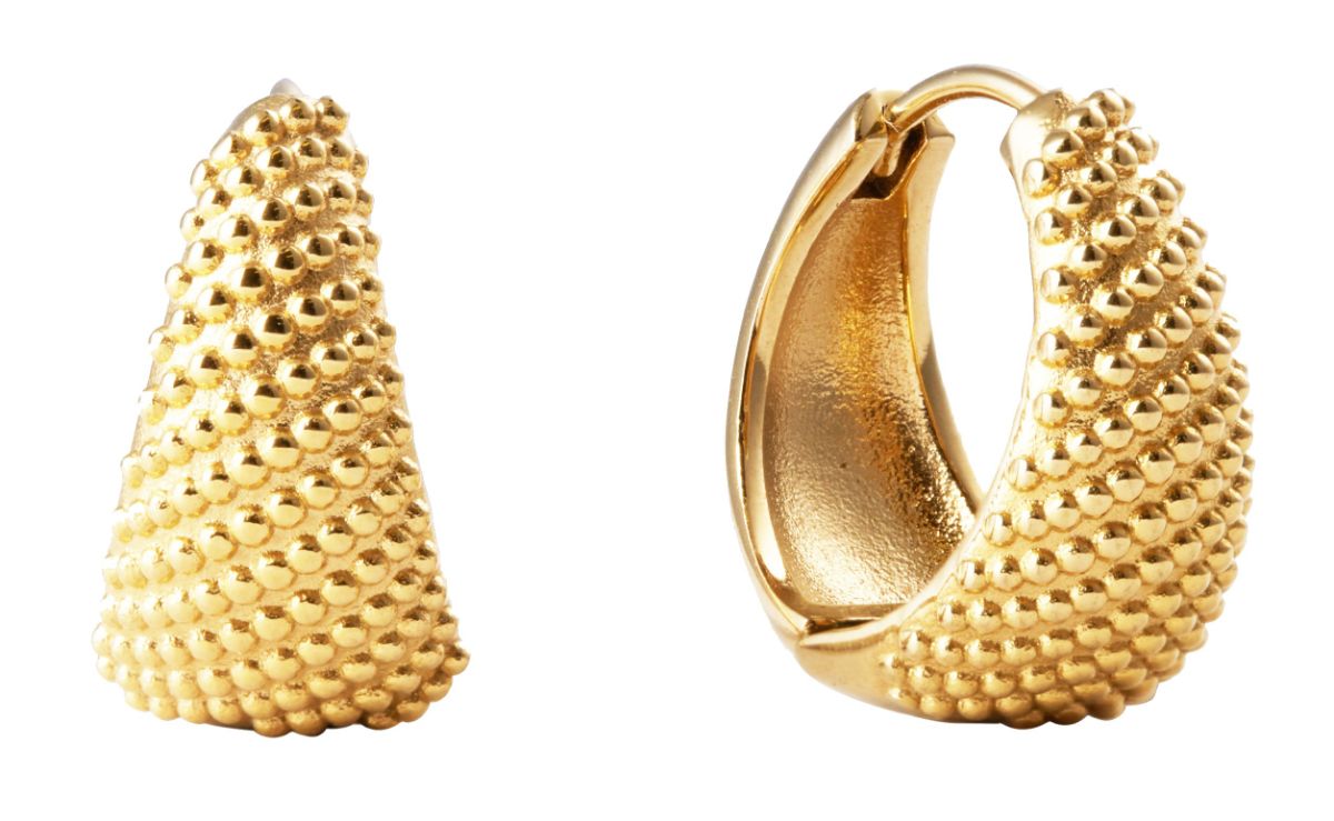 Kullanvärisissä Mockberg korvarenkaissa Large MO150 on hieman alaspäin levenevä muoto, ja pintarakenne, joka muistuttaa hunajakennoa, joka antaa korulle sen näyttävän ilmeen. Kokonaisuuden viimeistelee runsas ja ylellinen kullanvärinen 18-karaatin PVD-pinnoite, joka pitää korvakorut kiiltävänä pitkään. Mockberg Honey-korvarenkaat ovatkin täydellinen statement-koru, jotka viimeistelevät minkä tahansa tyylin. Korvarenkaat on valmistettu ruostumattomasta teräksestä, ja niiden koko on 18 mm. Kaikilla Mockberg-koruilla on 1 vuoden vuoden takuu, ja ne toimitetaan FSC- sertifioidussa rasiassa. Mockberg korut ovat täysin vedenkestäviä. Voit siis käydä huoletta suihkussa, kylpeä ja urheilla riisumatta koruja.