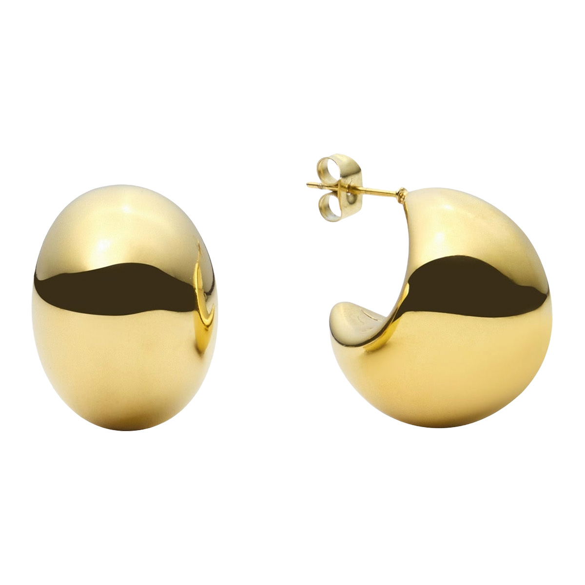 Valmistettu ruostumattomasta teräksestä ja päällystetty 18K kullanvärisellä PVD-pinnoitteella, nämä kestävät korvakorut säilyttävät värinsä ja tyylinsä pitkän ajan. Korvakorujen tyylikäs muotoilu ja kauniisti kiiltävä kultapinnoite tekevät niistä täydellisen valinnan niin arkeen kuin juhlaankin. Korvakorujen minimalistinen mutta vaikuttava suunnittelu täydentää hienosti erilaisia asusteita ja asukokonaisuuksia. Leveys 20 mm ja korkeus 23 mm.