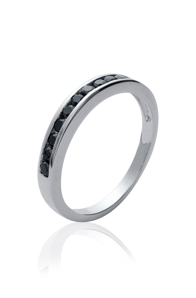 Tyylikäs naisten hopeasormus mustilla synteettisillä Zirconia -korukivillä. Hopeinen sormus on valmistettu 925 Sterling -hopeasta ja se on 3 mm leveä leveimmästä kohtaa. Kaikki naisten hopeiset sormukset toimitetaan postikuluitta.
